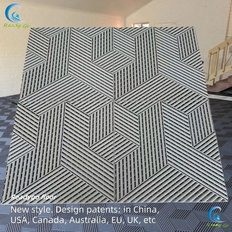 Με πιστοποίηση REACH, πιστοποιητικό αντοχής σε πυρκαγιά SGS και πιστοποίηση προστασίας του περιβάλλοντος, το Readygo 3D-cubic Garage Floor Tile εγγυάται ανώτερα πρότυπα ποιότητας και ασφάλειας.Οι πιστοποιήσεις αυτές αντανακλούν τη δέσμευση της μάρκας να παρέχει φιλικές προς το περιβάλλον και ανθεκτικές στη φωτιά επιλογές δαπέδων που συμμορφώνονται με τους διεθνείς κανονισμούςΤα πλακάκια είναι διαθέσιμα σε διάφορα χρώματα, συμπεριλαμβανομένου του μαύρου, του γκρι, του μπλε, του λευκού και του κίτρινου, επιτρέποντάς σας να προσαρμόσετε το δάπεδο σας σύμφωνα με το προσωπικό σας γούστο και τη διακόσμηση του χώρου σας.